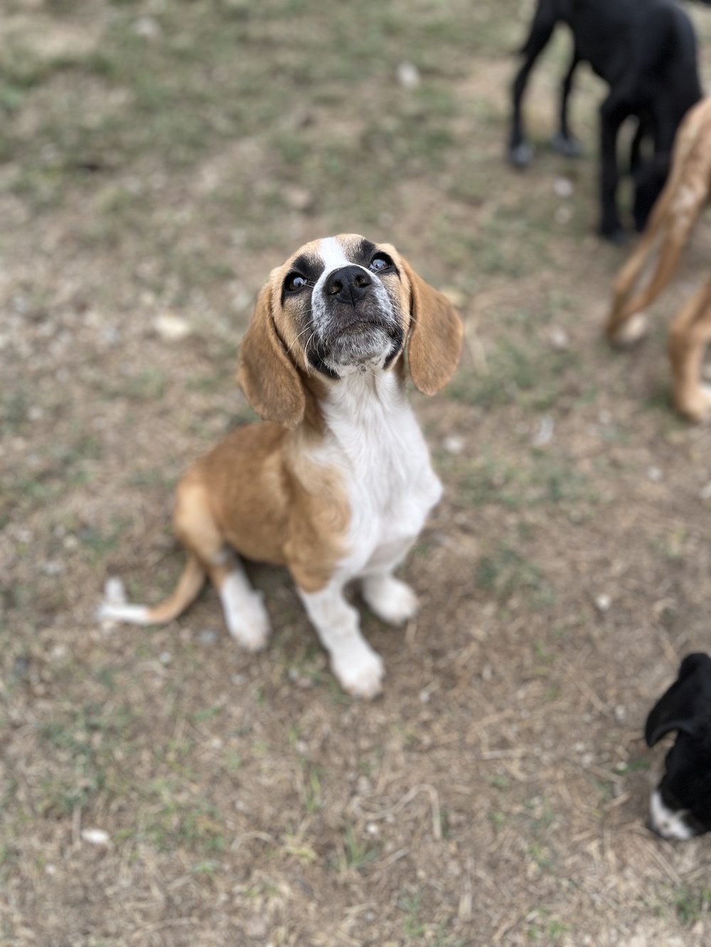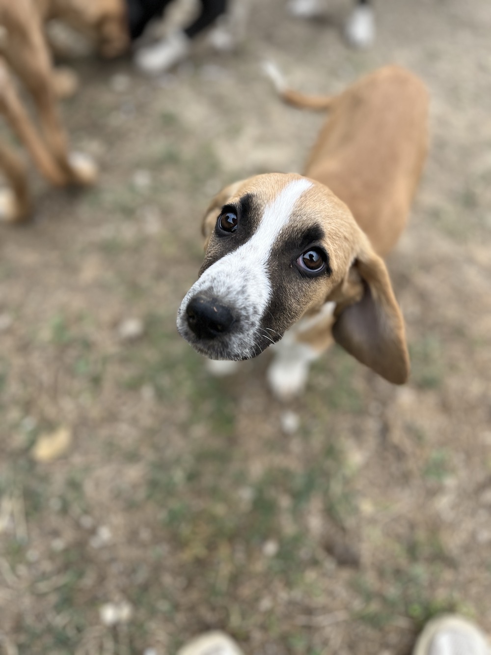Phänotypisch wirke ich wie eine klare Bracken-Mischung. Da niemand etwas über meine Eltern weiß, kann meine endgültige Größe nur geschätzt werden – mittelgroß passt aber sehr gut.
