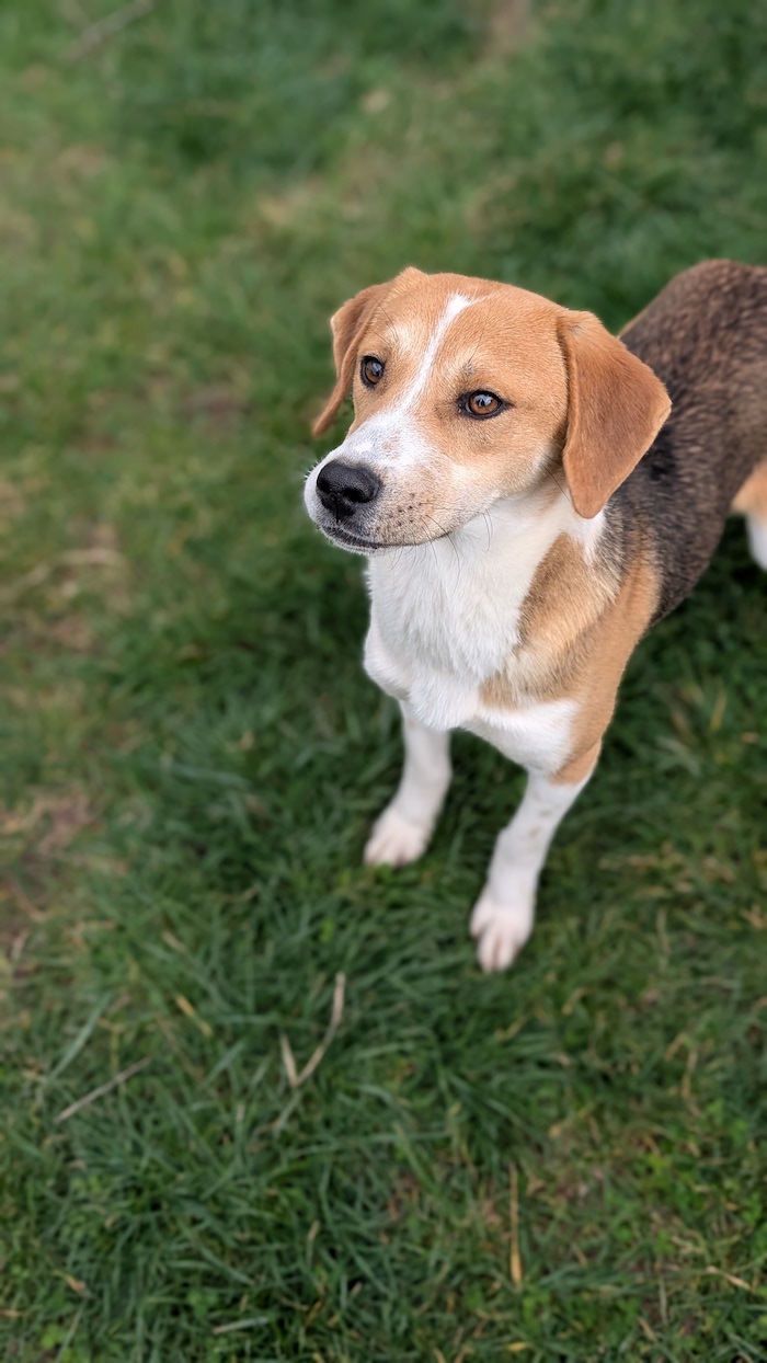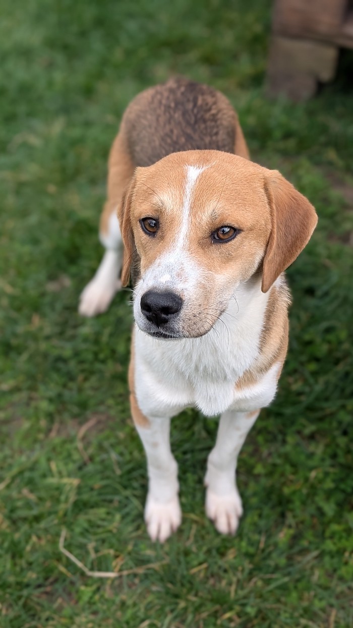 Ich bin verträglich mit anderen Hunden und zeige mich in der Gruppe eher ruhig und untergeordnet. Ich beobachte viel, lerne schnell und orientiere mich gern an sicheren Artgenossen. Futter finde ich klasse – das hilft mir, Neues motiviert zu lernen. Leine, Halsband und Geschirr kenne ich bereits, und auch die Reize der Straße sind mir nicht fremd.