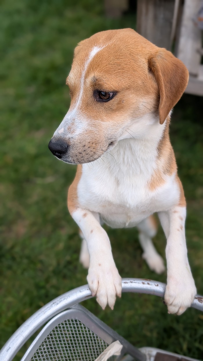Ich wurde etwa im März 2025 geboren, bin 48 cm groß und wiege rund 16 kg. Ich entwickle mich zu einem feinfühligen, neugierigen Hund, der sanft durchs Leben geht und viel zu geben hat.